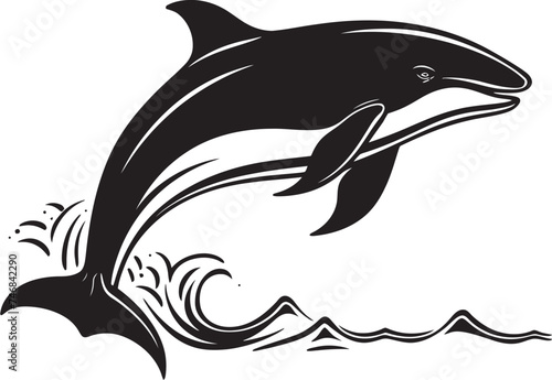 © BABBAN, Fototapeta premium Tranquil Tide Iconic Whale Emblem Soaring Seas Vector Logo Icon