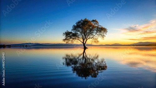 Fototapeta premium Tranquil tree silhouette shadow art reflecting in calm lake , nature, serene,...
