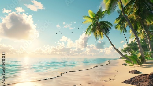 © Ariep, Obraz premium Tranquil Tropical Beach at Sunset