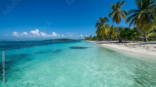 © artzone, Naklejka premium Tranquil Tropical Beach Scene with Turquoise Water and Palm Trees