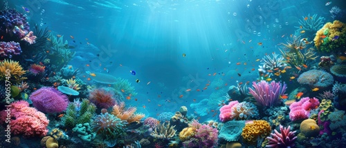 Fototapeta premium Tranquil Underwater Oasis: Diverse Marine Life in Vibrant Undersea Landscape