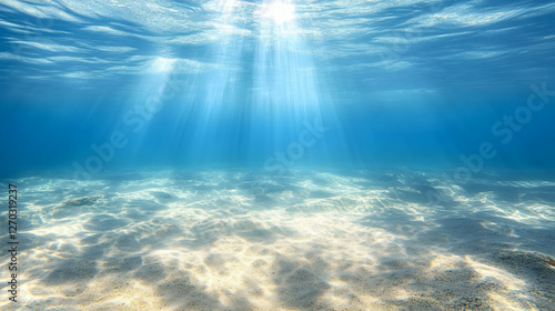 Fototapeta premium Tranquil Underwater Scene with Sunlight and Sandy Ocean Floor