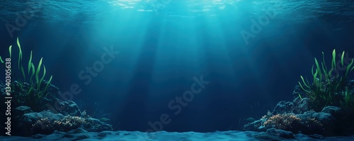 © Teerapat, Fototapeta premium Tranquil Underwater Scene with Sunlight and Sea Vegetation