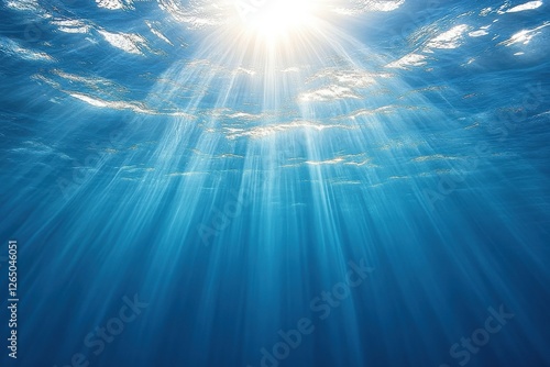 Fototapeta premium Tranquil Underwater Scene with Sunlight Rays Illuminating Deep Blue Water...