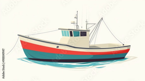 Fototapeta premium Tranquil Vintage Fishing Boat Aerial View - Minimalistic Vector Illustration...