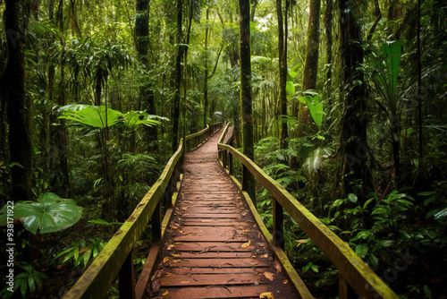 Obraz premium Tranquil Walkway Through Lush Tropical Rainforest