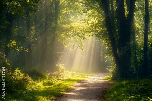 © Tithi, Fototapeta premium Tranquil Walkway Under a Canopy of Sunlit Trees