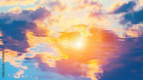 Obraz premium Tranquil water surface with gentle ripples and reflective sky at sunset for...