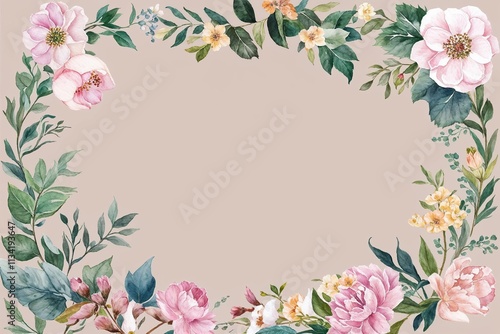 Fototapeta premium Tranquil Watercolor Botanical Collection Featuring Floral Borders and Lush Foliage for Invitations and Home Decor