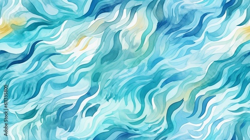 © VisualMarketplace, Obraz premium Tranquil Watercolor Ocean Waves Pattern
