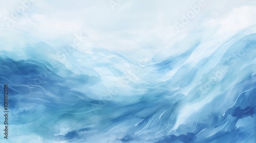 © yelosole, Obraz premium Tranquil Watercolor Ocean Waves with Dynamic Brushstrokes and Serene Blue Tones