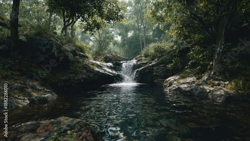 © darshika, Obraz premium Tranquil Waterfall in a Lush Forest
