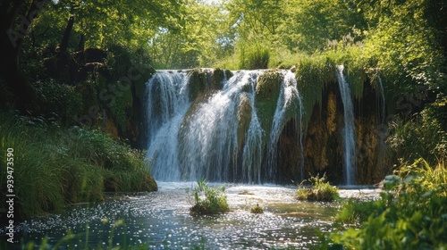© Zam, Obraz premium Tranquil Waterfall in Lush Forest