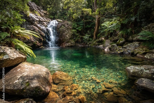 © ika, Obraz premium Tranquil waterfall pool in a lush forest (1)