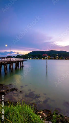 © Tiramisu, Obraz premium Tranquil waterfront scene at twilight.