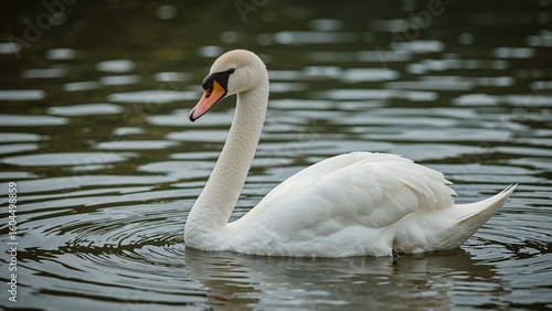 © AkuAku, Naklejka premium Tranquil waters with a solitary white swan