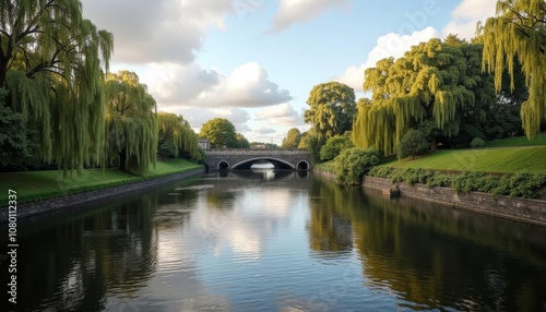 © SwathiFX, Fototapeta premium Tranquil waterscape under a cloudy sky