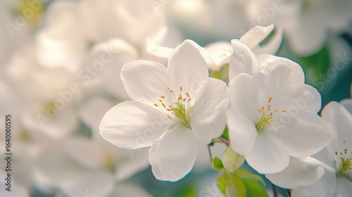 Fototapeta premium Tranquil white flowers with vibrant centers create serene atmosphere,...