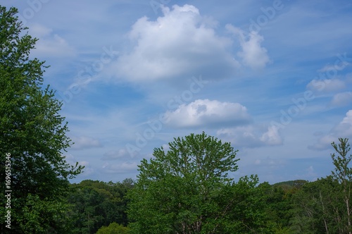 © AkuAku, Fototapeta premium Tranquil Wilderness with Verdant Foliage Under a Clear Blue Sky