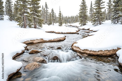 Fototapeta premium Tranquil Winter Stream in a Snowy Forest