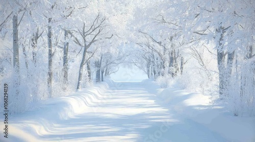 Naklejka premium Tranquil Winter Wonderland: Snow-Covered Trees with Intricate Ice Crystals...