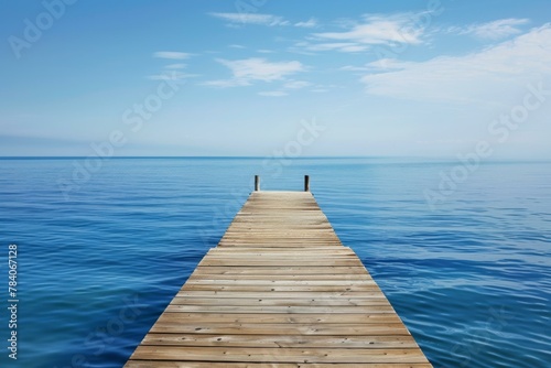 © Skyfe, Obraz premium Tranquil Wooden Pier Over Serene Blue Sea, Relaxation Concept