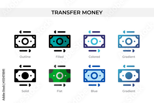 © Aozora, Fototapeta premium Transfer Money icon in different style. Transfer Money vector icons designed in outline, solid, colored, filled, gradient, and flat style. Symbol, logo illustration. Vector illustration