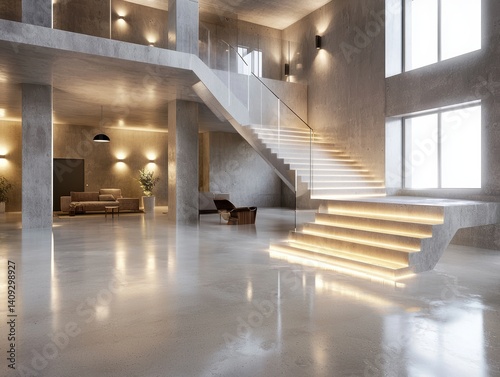 Obraz premium Transforming modern loft interior urban living space design inspiration polished concrete environment contemporary concept