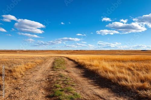 © Putra, Fototapeta premium Transitional Landscape with Open Space Under Blue Sky and Fluffy Clouds