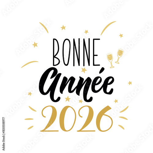 © anngirna, Fototapeta premium Translation from French - Happy New Year 2026. Perfect design for greeting cards, posters and social media. French Lettering.
