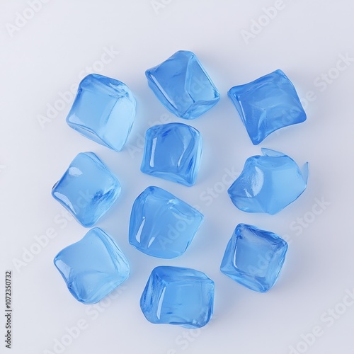 © Riya, Naklejka premium Translucent blue ice cubes on a plain background