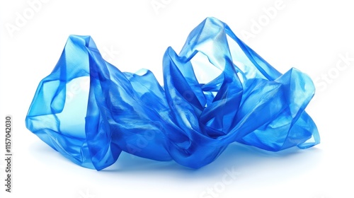 Fototapeta premium Translucent blue polythene wrinkled and shaped artistically on a clean white background for creative design elements and abstract concepts