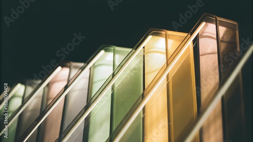 Fototapeta premium Translucent Colored Panels in Diagonal Gradient – Modern Architectural Art with Backlit Glow