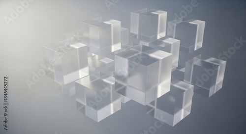 Fototapeta premium Translucent Cubes Abstract Composition with Soft Lighting on Gray