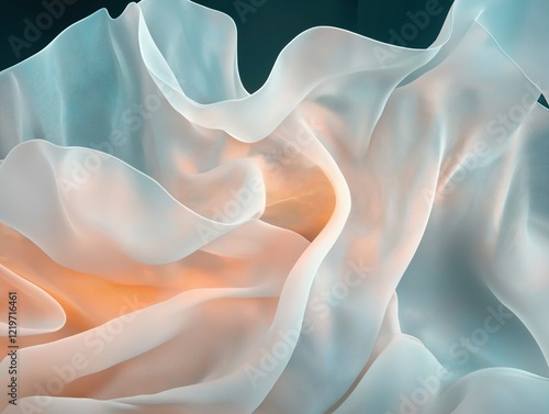 Obraz premium Translucent fabric waves with soft orange glow – elegant abstract composition...
