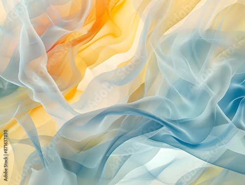 © Анастасия Обухова, Obraz premium Translucent flying blue and yellow fabric with folds and waves overlapping each other