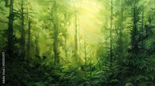 Obraz premium Translucent green layers blend evoking enchanted forest atmosphere