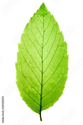 Obraz premium Translucent green leaf on white background