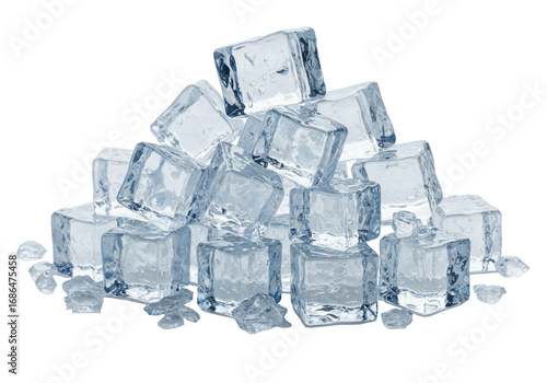 © Mayasari, Obraz premium Translucent ice cubes pile transparent background