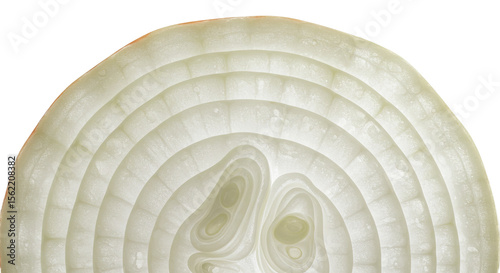 © Budi, Obraz premium Translucent layers of a sliced white onion create a circular pattern