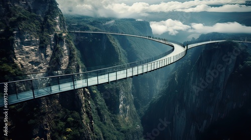 Fototapeta premium Translucent, panoramic, suspended, architectural marvel, stunning, contemporary, engineering feat, infinity. Generated by AI.