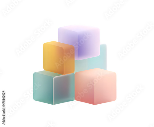 © Jiajia, Obraz premium Translucent Pastel 3D Cubes Stack with Transparent Background