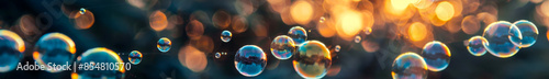 © Purple_Lamp, Obraz premium Translucent Soap Bubbles Floating in the Air at Sunset