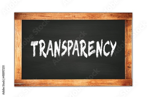Fototapeta premium TRANSPARENCY text written on wooden frame school blackboard.