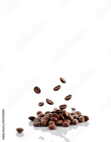 © fotoluigi868, Naklejka premium Transparent background allows floating coffee beans to stand out in a visually appealing and minimalistic PNG image design._00001_