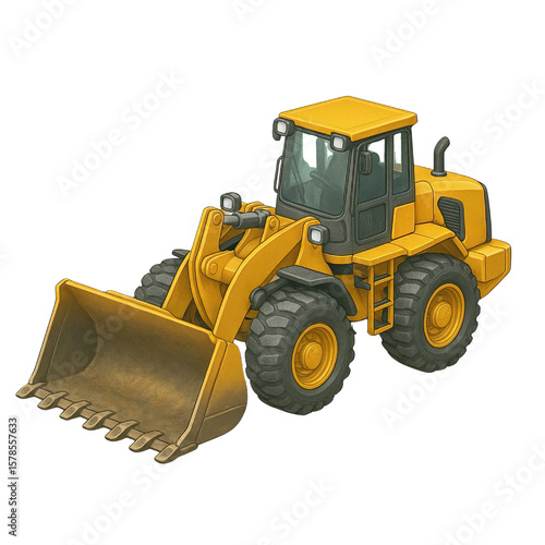 Fototapeta premium Transparent background Heavy yellow loader machine with bucket attachment.