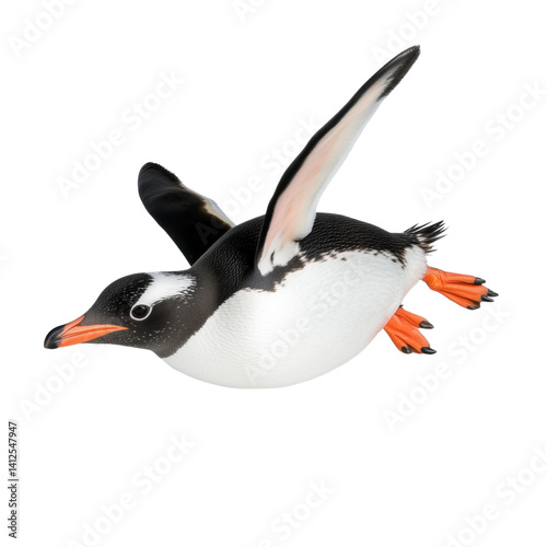 © sujittra, Fototapeta premium Transparent background penguin in flight arctic environment wildlife photography