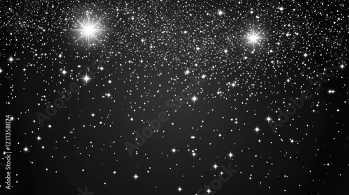 Fototapeta premium transparent black distressed overlay background with tiny white particles scattered across it, creating an impression of stars or snowflakes in the night sky