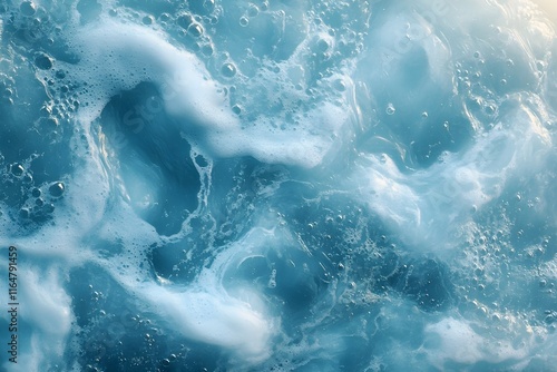 © BAYC, Fototapeta premium Transparent blue clear water surface texture with ripples, splashes and bubbles. Abstract summer banner background Water waves in sunlight with copy space Cosmetic moisturizer micellar toner emulsion