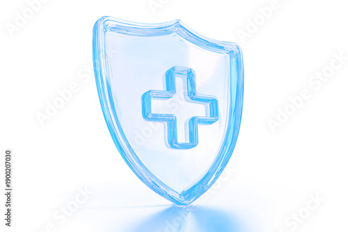 © Prazis Images, Fototapeta premium Transparent blue glass shield with medical cross